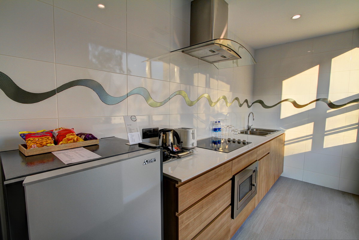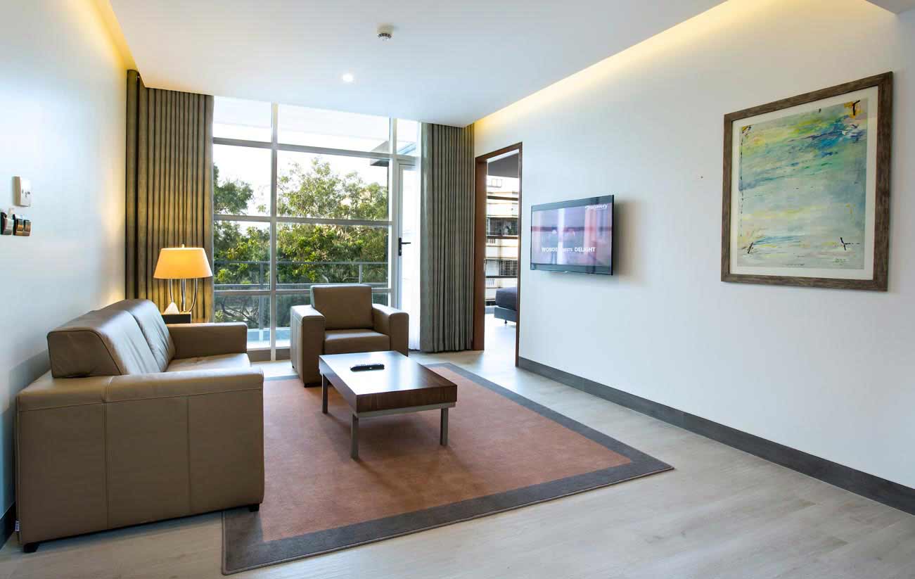 Our 650 square feet deluxe apartments appeal to the travelers who only want the best. From the king size Egyptian cotton bed sheets, to the rain showers in the bathrooms, we want you to relax and forget about everything else. Watch some TV in your living room or bedroom. Invite your friends over for a movie. Cook a meal in your own kitchenette or order in room service; it’s all there.